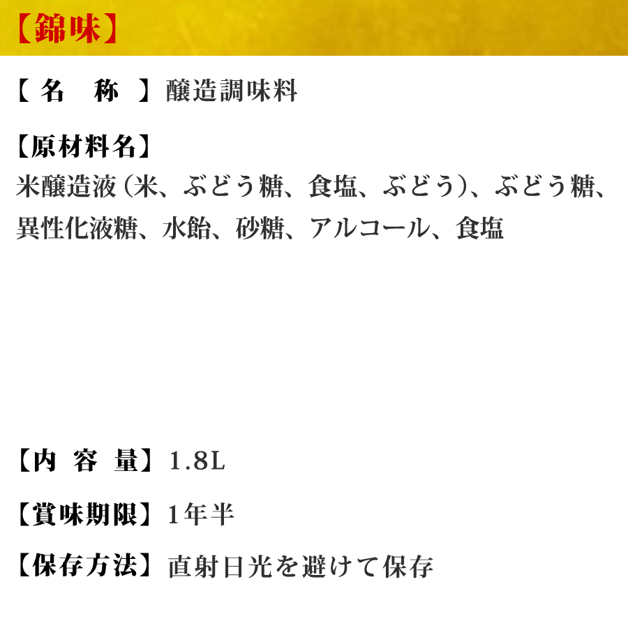 【業務用みりん】【プロ御用達】≪錦味 1.8L≫【九州 みりん】【九州・熊本の老舗醤油屋ホシサン】