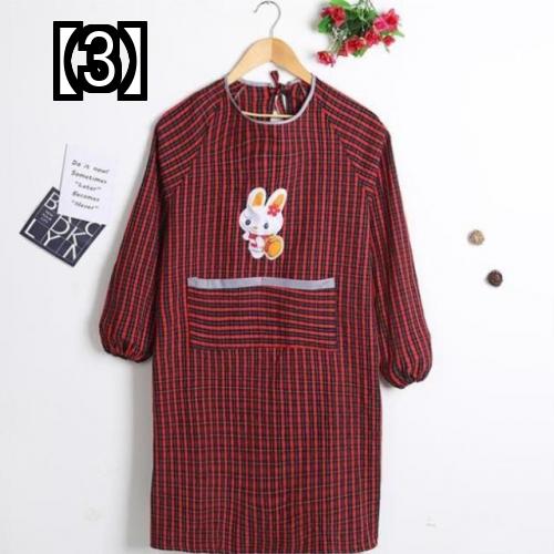 エプロン おしゃれ 作業服 作業着 ワーク 割烹着 長袖 ポケット ガーデニング コットン 高齢者向け キッチン クマ レッド ブルー ウサギ チェック柄