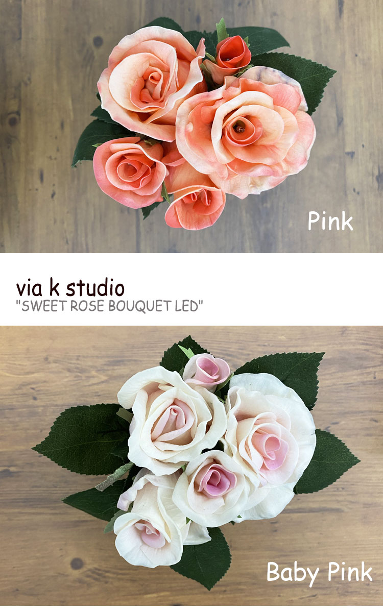 ビアケイスタジオ 造花 via k studio SWEET ROSE BOUQUET LED スウィート ローズ ブーケ BABY PINK ベビーピンク PINK ピンク 韓国雑貨 1948591 ACC スタンド方式のランプではない、軽くて便利なブーケデザインのランプで持ち運べて、テーブルや棚の上に置いて使える方式で製作しました。